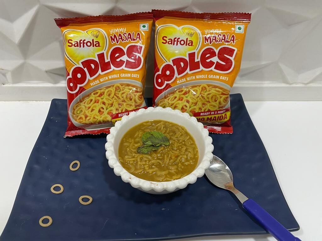 You read that right! Saffola Oodles, as quirky as the name, is instant noodles, but with a twist. It is a #NoMaida noodles. It is made with whole grain oats. Just like any mother, I was skeptical to try this as there are numerous products in the market available which claim to be “no maida” but we all know the reality behind them, right? So, I checked the ingredients- and as it turns out it has 0% Maida, these are Oats Noodle. And it has a very yummy masala taste, which is loved by my kids! You can vouch for my words that your kids would absolutely enjoy their snacktime now! It comes in a unique ring-like shape, which not just grabs the kids’ attention, but the shape also makes it easy to eat with a spoon or a fork and is easy to chew.